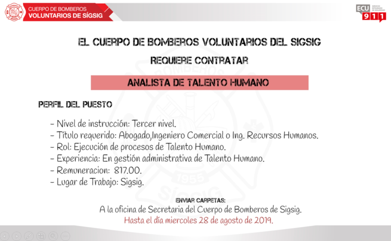 El Cuerpo de Bomberos Voluntarios del Sígsig, mediante la presente, busca CONTRATAR UN ANALISTA DE TALENTO HUMANO MISIÓN Administrar la